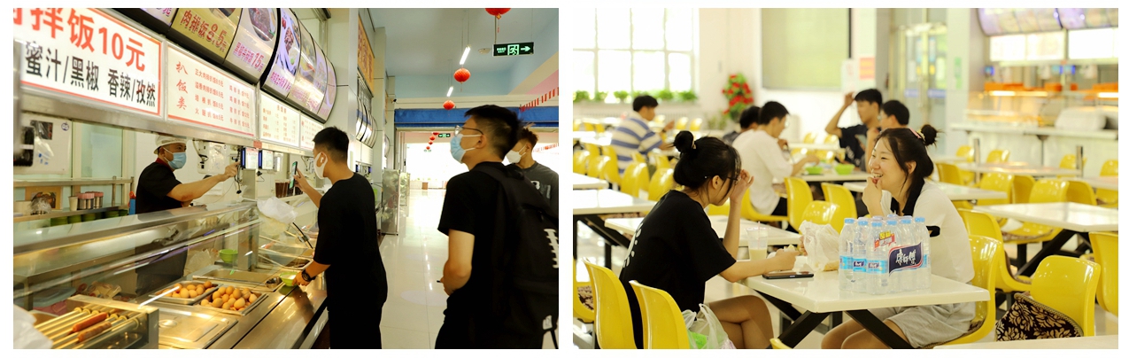 在稻香园食堂入口处,安全就餐指引牌一目了然,进门处的大容量智能体温筛查设备可实现多人同时通行、快速测温。工作人员在详细询问大家饭菜是否可口。同学们纷纷表示,丰盛的菜品依旧是熟悉的味道。