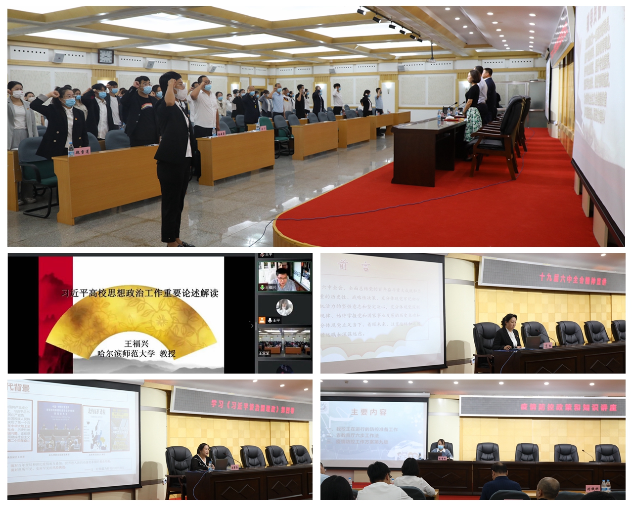 培训中,学校特邀校内外专家学者为全体参训学员作《高校学生突发事件应急处置策略》《习近平关于高等教育重要论述解读》《十九届六中全会精神宣讲》《开辟新境界实现新飞跃的权威著作——专题学习习近平论治国理政第四卷》《黑河学院2022年秋季学期开学疫情防控工作要求》等专题讲座,讲座涵盖党的理论教育、理想信念教育、意识形态工作、思想政治教育创新、辅导员专业化职业化发展、校园危机事件应对处理、疫情防控工作等培训内容。讲座内容丰富,生动详实,拓宽了辅导员队伍思政教育工作视野,对今后更好地落实立德树人根本任务,提高思政工作质量水平具有很强的指导意义。