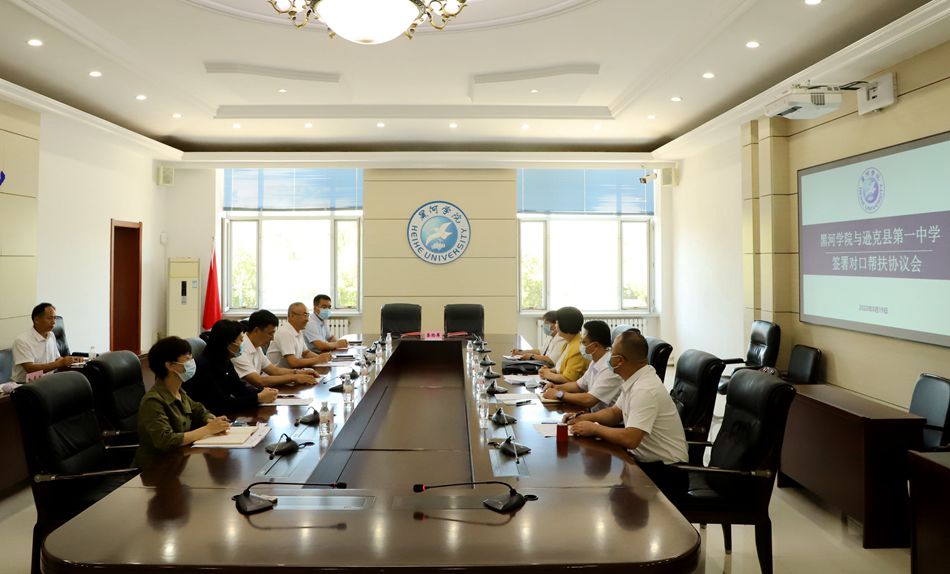 本网讯(特约记者 张璐 摄影 郭瑞)为深入贯彻落实《黑龙江省教育厅关于开展省属高校县中托管帮扶工作的通知》精神,进一步深化校地融合、推进校地合作共建,8月19日上午,我校与逊克县第一中学举行对口帮扶协议签订仪式。我校党委副书记、院长杨敬民,党委委员、副院长许海深,黑河市教育局副局长蒋保华,逊克县副县长吴桂香、逊克县第一中学校长朱效军及学校相关部门与二级学院负责人出席签约仪式。签约仪式由许海深主持。