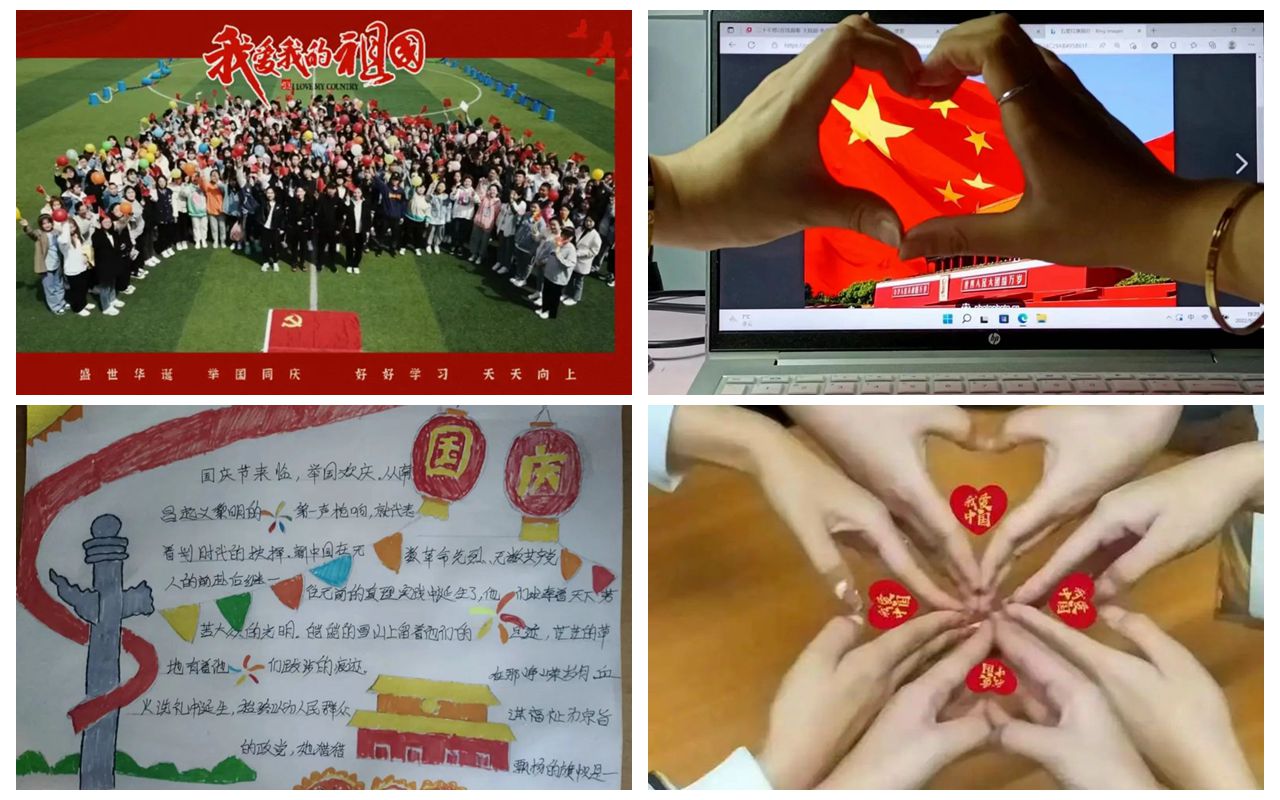 此外,外国语学院、经济管理学院、理学院等学院围绕弘扬爱国主义精神和社会主义核心价值观,分别组织了“走出寝室,迈向阳光”校园户外走扁带活动、“爱国心·强国梦”知识竞赛、“缤纷校园,艺彩飞扬”手工折纸比赛、“我为祖国“绘画手抄报、“写给祖国的祝福”手写信、“我为祖国比心”等形式丰富的活动,引导广大青年坚定理想信念,不断增强民族自尊心、自信心和自豪感,以赤诚爱国心祝福祖国,以真挚爱国行献礼祖国,赓续“永久奋斗”精神基因,以个人“小我”熔铸强国“大我”。