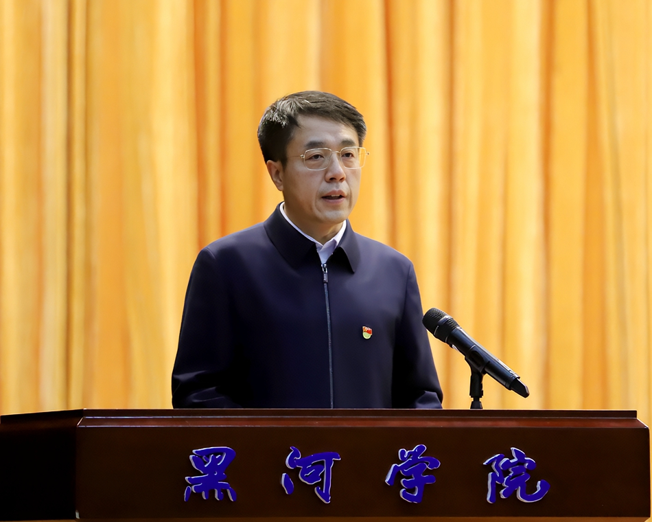 本网讯(记者 关月 摄影 郭瑞)12月3日上午,市委书记、市人大常委会主任、市委宣讲团团长李锡文到我校宣讲党的二十大精神,以“深入学习贯彻党的二十大精神,以青春之名续写时代华章”为题讲授思政课。他强调,要全面学习、全面把握、全面落实党的二十大精神,立志做有理想、敢担当、能吃苦、肯奋斗的新时代好青年,让青春在全面建设社会主义现代化国家的火热实践中绽放绚丽之花。市委常委、组织部部长王大勇,我校党政领导班子成员及部分党员领导干部、师生代表线上线下参加宣讲活动。校党委书记杨弘宇主持活动。