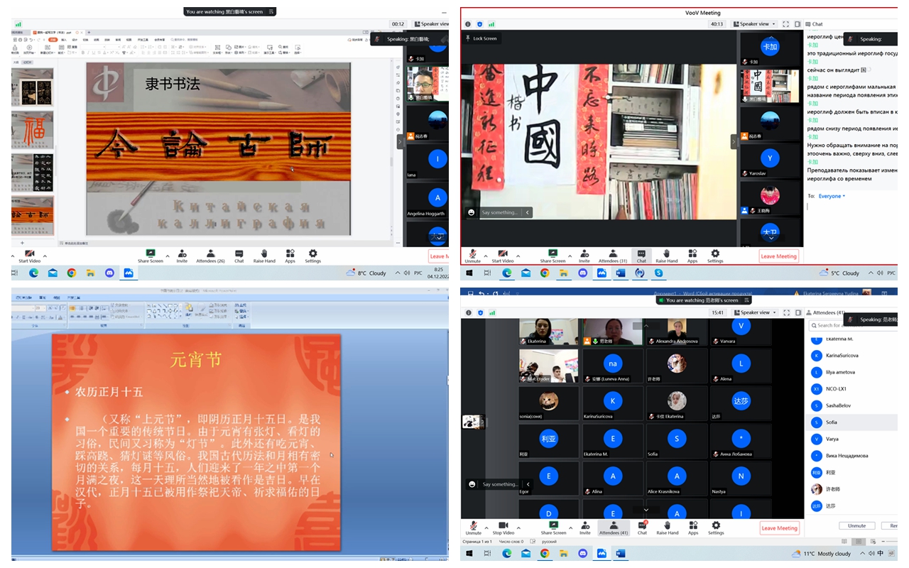 本网讯(记者 关月 特约记者 王晓梅)为高效落实2022年教育部中外语言交流合作中心“汉语桥”线上团组交流项目,12月6日,由国际教育学院、国际交流合作处、孔子学院联合主办的“汉语桥”线上团组交流培训落下帷幕。全校10位教师组成的教学团队通过直播的形式,陪同来自俄罗斯克里米亚联邦大学的63名学生完成了线上学习之旅。