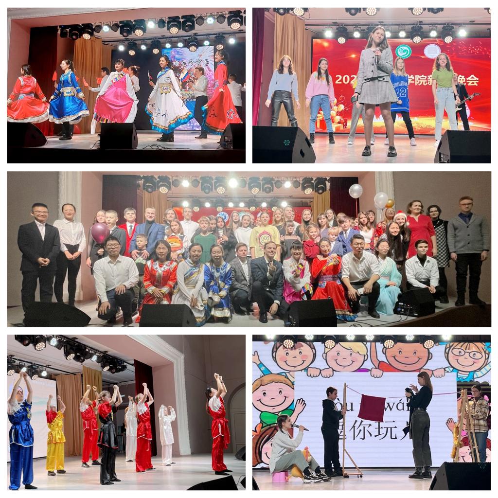 12月29日,布拉戈维申斯克国立师范大学二楼礼堂张灯结彩,喜气洋洋。我校与俄罗斯布拉戈维申斯克国立师范大学共建的孔子学院因疫情中断了2年的新年文艺晚会热闹上演,师生们准备了汉语歌曲串烧、诗朗诵、小品、五禽戏、互动游戏等丰富多彩的庆祝节目,共同上演了一场中华文化盛宴。期间,孔子学院为本年度孔子学院优秀学员颁发证书及奖品,大家互送祝福,迎接新年的到来。
