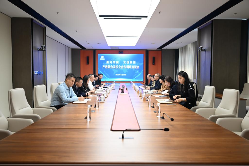 本网讯(特约记者 张璐)为进一步促进学校与行业企业间的沟通交流,探索建立校企合作长效机制,积极推进校企战略框架合作协议落实落靠,实现校企共建双赢。3月28日,党委委员、副院长许海深带队前往黑龙江省交投集团举行产教融合校企合作调研座谈会,省交投集团党委副书记赵阳及人力资源、市场总监、科技发展部、组织人事部相关部门负责人;我校教务处、理学院、外国语学院、经济管理学院负责人参加了座谈会。会议由省交投集团党委委员、副总经理韩存玉主持。