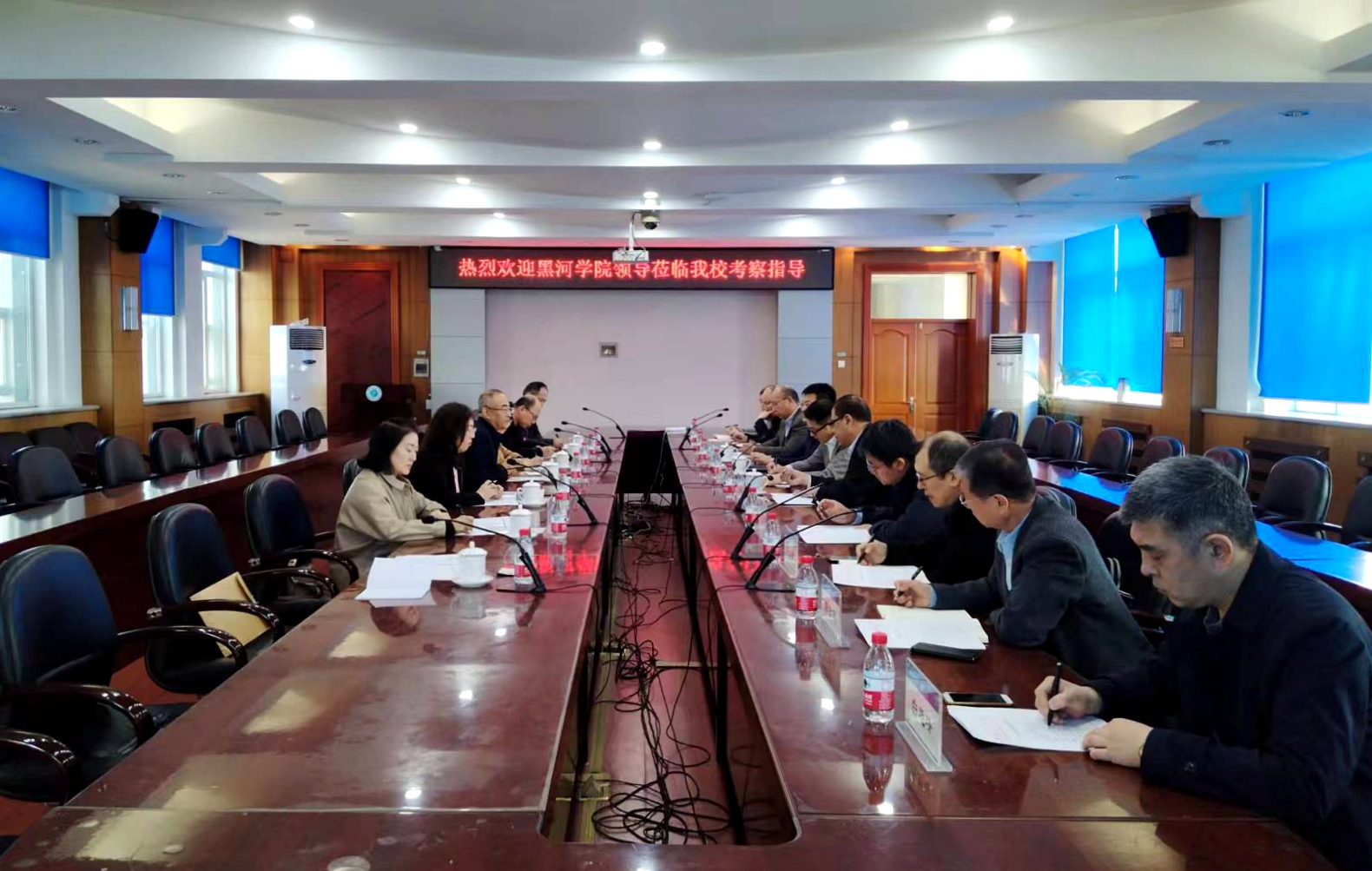 会后,在付百学的陪同下,许海深一行先后调研了专业实验实训室40余间。通过调研交流的深入探讨,进一步明确了“中俄产教融合协同创新实训楼”的目标定位,学校将继续加强和规范实训楼内部空间的规划和设计,全力推动学校中俄产教融合协同创新实训楼建设,形成中俄产教融合发展新格局,为助力黑河市中小企业科技创新和转型升级,助推自由贸易试验区黑河片区建设、龙江中俄贸易高质量发展贡献力量。