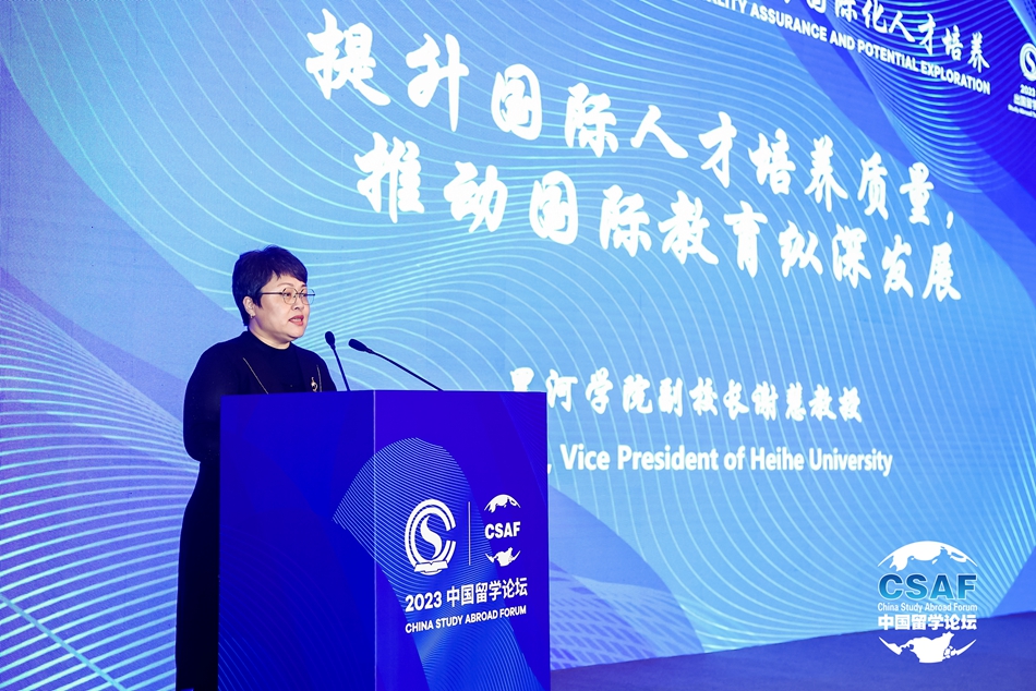 在2023年中国留学论坛“出国留学培训项目”分论坛上,谢慧代表学校作题为“提升国际人才培养质量,推动国际教育纵深发展”的主旨发言,重点介绍了我校国际化办学和赴俄留学培训基地建设成果,分享了赴俄留学培训基地的办学经验和成功作法,主旨发言得到与会领导、专家、同仁的高度认可。