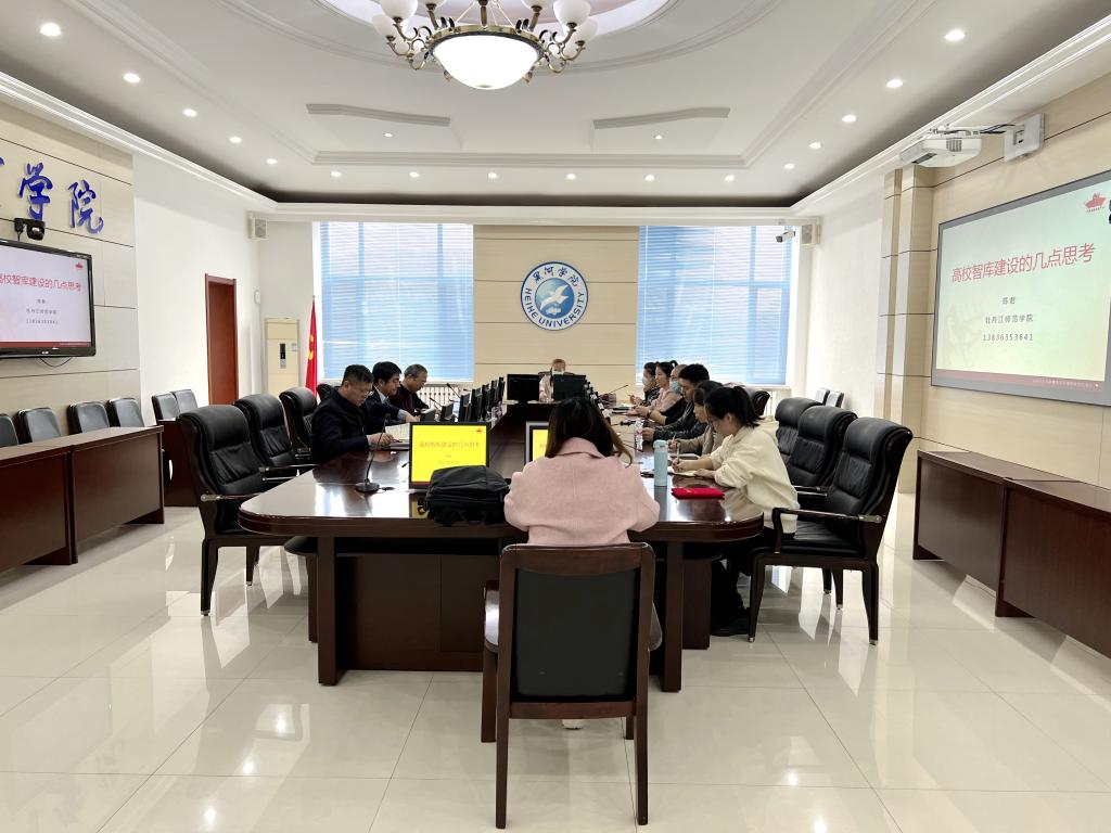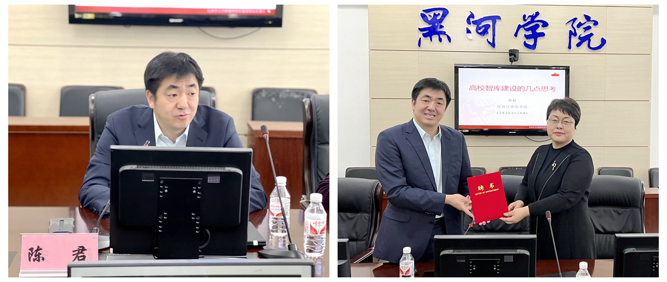 本网讯(特约记者 柳青)为扎实推进新型智库建设理论创新和实践应用不断向深度和广度拓展,提升智库科研人员撰写决策建议报告能力,4月10日,学校远东研究院在明德楼2楼会议室举行学术讲座,邀请牡丹江师范学院计算机与信息技术学院党委书记、“中国抗联研究中心”副主任陈君博士作主题讲座。党委委员、副院长谢慧出席讲座并为陈君博士颁发“黑龙江省俄罗斯远东研究学术交流基地”学术委员会学术委员聘书。