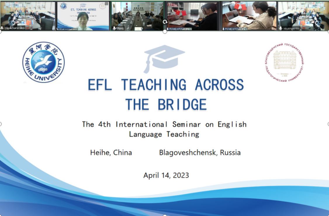 本网讯(特约记者 常丽坤)4月12日下午,由我校与俄罗斯布拉戈维申斯克国立师范大学联合主办的第四届“语言为桥携手共研”中俄英语教学国际研讨会在线上举行。布拉戈维申斯克国立师范大学外国语学院英语语言学系教师,西安外国语大学在读博士代表,绥化学院外国语学院教师代表及我校教务处、外国语学院负责人及全体英语教师等来自中俄四所高校三十五名教师参加研讨会。