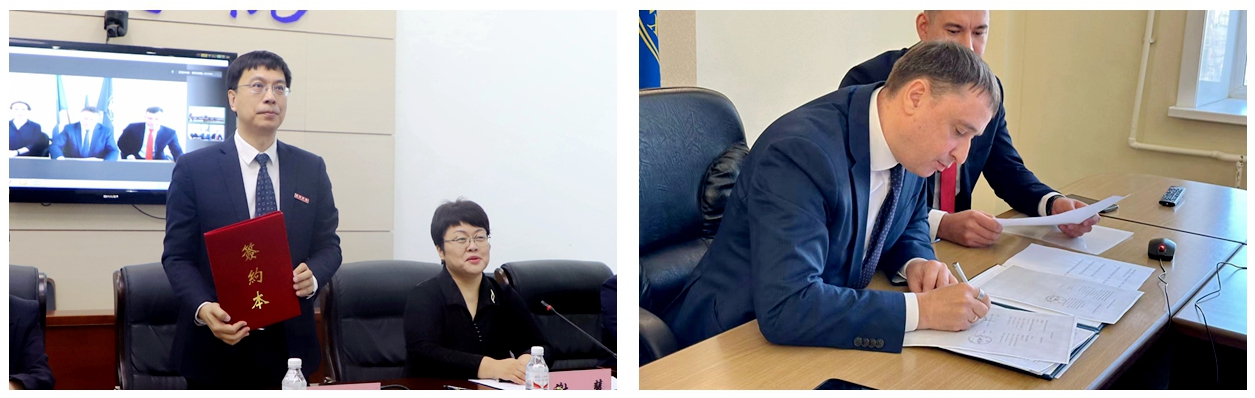 本网讯(特约记者 谢晓宇 摄影 郭瑞)4月26日上午,我校与俄罗斯哈巴罗夫斯克国立经济与法律大学举行线上合作签约仪式。俄罗斯哈巴罗夫斯克国立经济与法律大学校长博耶夫·马克西姆·尤里耶维奇,俄罗斯哈巴罗夫斯克国立经济与法律大学外事处、教务处负责人;我校党委副书记、院长杨敬民,副院长谢慧及教务处、国际交流合作处、文化旅游学院、经济管理学院、国际教育学院负责人参加线上合作签约仪式。