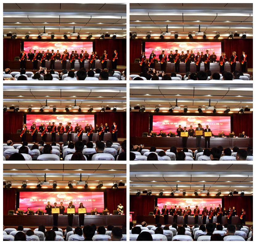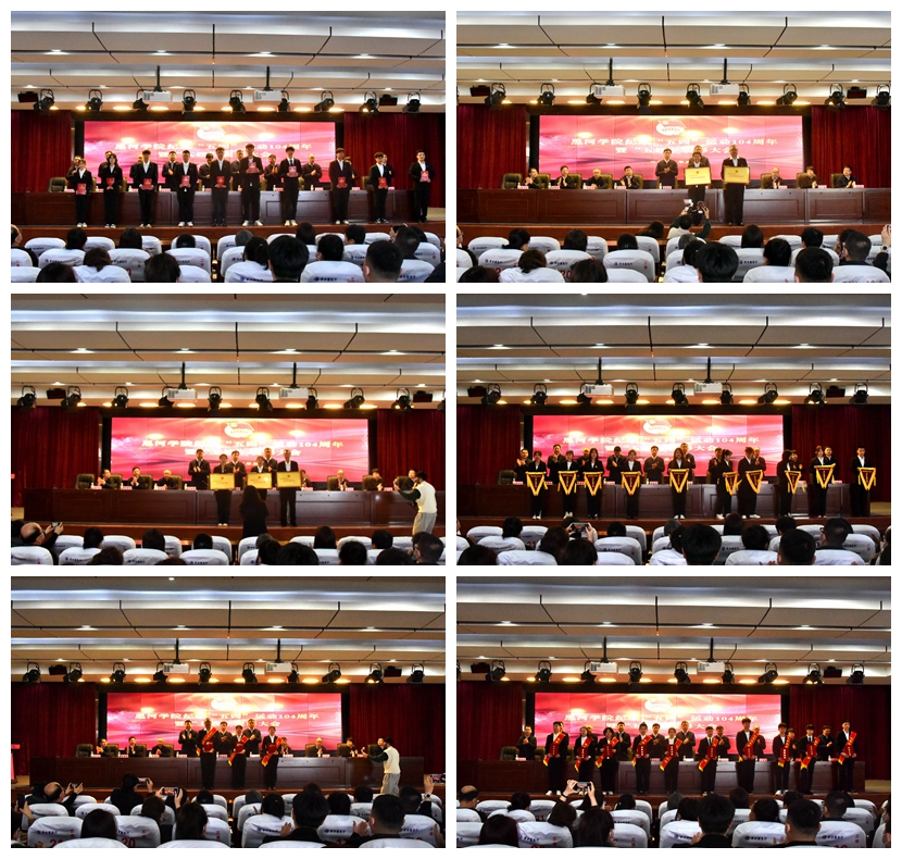 本网讯(特约记者 肖尧)为纪念五四运动104周年,进一步增强青年大学生的社会责任感和历史使命感,表彰一年来全校涌现出来的共青团先进集体和个人。5月4日下午,我校纪念五四运动104周年暨五四表彰大会在求知楼报告厅举行。学校党政领导班子成员,各学院党总支书记、副书记,院长、副院长,全体辅导员和受表彰的先进集体、先进个人代表及全校团员青年代表参加表彰大会。会议由学校党委副书记王春雷主持。