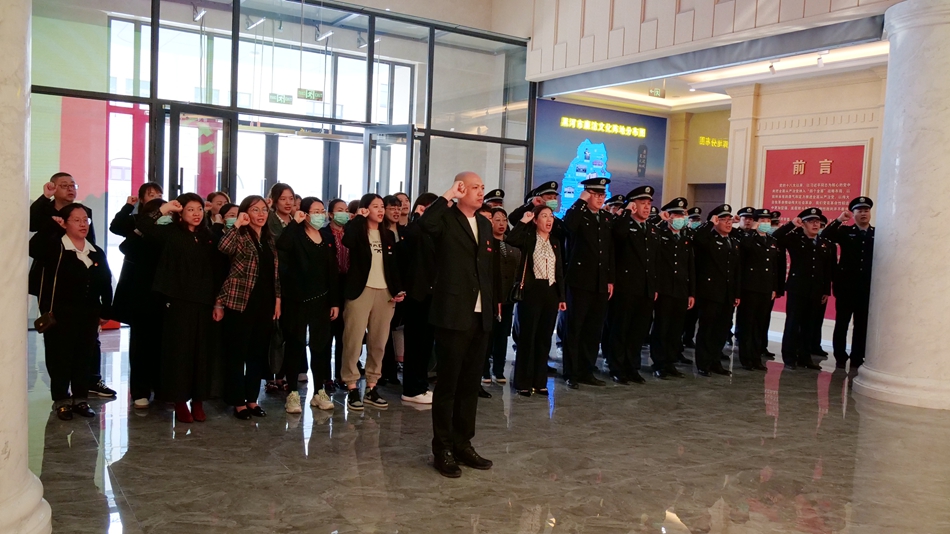 本网讯(特约记者 张雪梅 摄影 陈慧)为推进学习贯彻习近平新时代中国特色社会主义思想主题教育走深走实,丰富党风廉政教育实践,5月12日,外国语学院党总支与共建单位爱辉边境管理大队党委开展“深耕红色资源 厚植清廉基因” 警示教育主题党日活动,集体参观黑河市纪委监委廉政警示教育基地,并重温入党誓词。