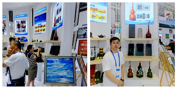 本网讯(特约记者 于永明)6月7—11日,由中共中央宣传部、中华人民共和国文化和旅游部、中华人民共和国商务部、国家广播电视总局、中国国际贸易促进委员会、广东省人民政府、深圳市人民政府主办的“第十九届中国(深圳)国际文化产业博览交易会”在深圳国际会展中心(宝安)举办。我校美术与设计学院省级实践教学中心负责人门洪新老师带队参展,师生作品亮相文博会A10号黑龙江馆展厅,漆器葫芦、现代刻字等文化展品深受民众喜爱。