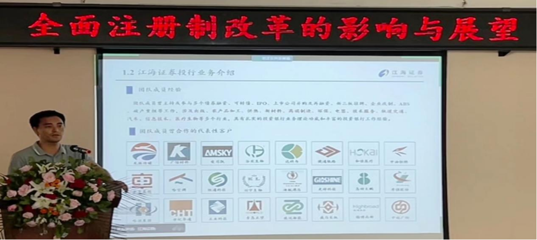 江海证券战略投行部高级副总裁申榜作题为《全面注册制改革的影响与展望》的主旨发言。与会人员希望以此次活动为契机,搭建校地合作、校企合作平台,在企业上市、就业培训、口岸经济、企业管理、人才培养等方面加强合作交流,建立更加广泛、更深层次的战略合作机制,实现资源共享、互利共赢、共同发展。