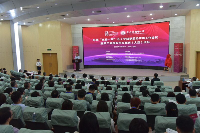 本网讯(特与记者 乔玉伟)6月16日,由东北“三省一区”孔子学院联盟协作体和大连外国语大学主办的东北“三省一区”孔子学院联盟协作体工作会议暨第三届国际中文教育(大连)论坛在大连外国语大学召开。我校副院长车永宏及国际教育学院负责人作为东北“三省一区”孔子学院联盟协作体首批成员单位,参加东北“三省一区”孔子学院联盟协作体揭牌仪式和系列论坛主旨报告。