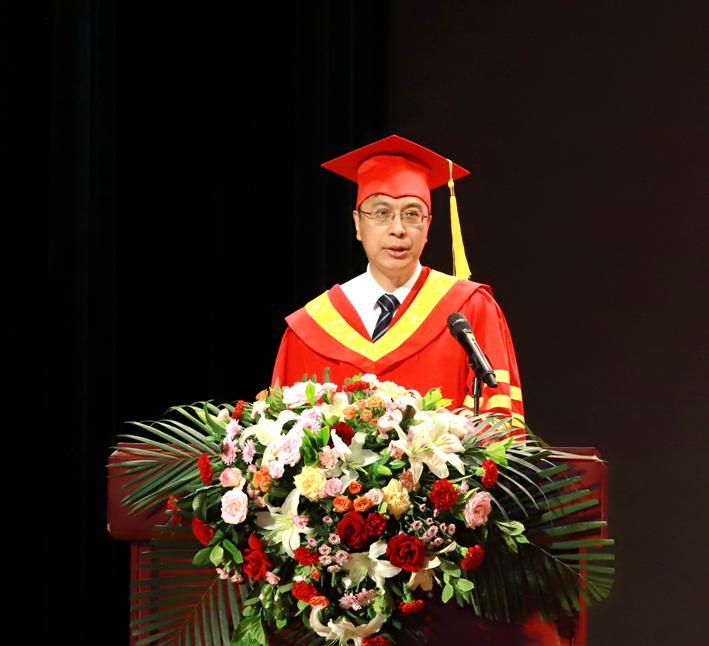 母校是大家青春的见证,也是永远的精神家园。希望同学们要坚定不移听党话、跟党走,坚持用脚步丈量祖国大地,踔厉奋发、勇毅前行,以青春韶华报效祖国,持续回应社会和他人的需求;希望同学们保持终身学习和思考的热情,拼搏进取,敢于创新,在生活中磨炼自己,在工作中提升自己,在共生中实现蜕变升华;希望同学们做一个讲诚信、知敬畏、守底线的人,对生活保有纯粹、保有热情、保有期许,做一个有社会责任感的人。