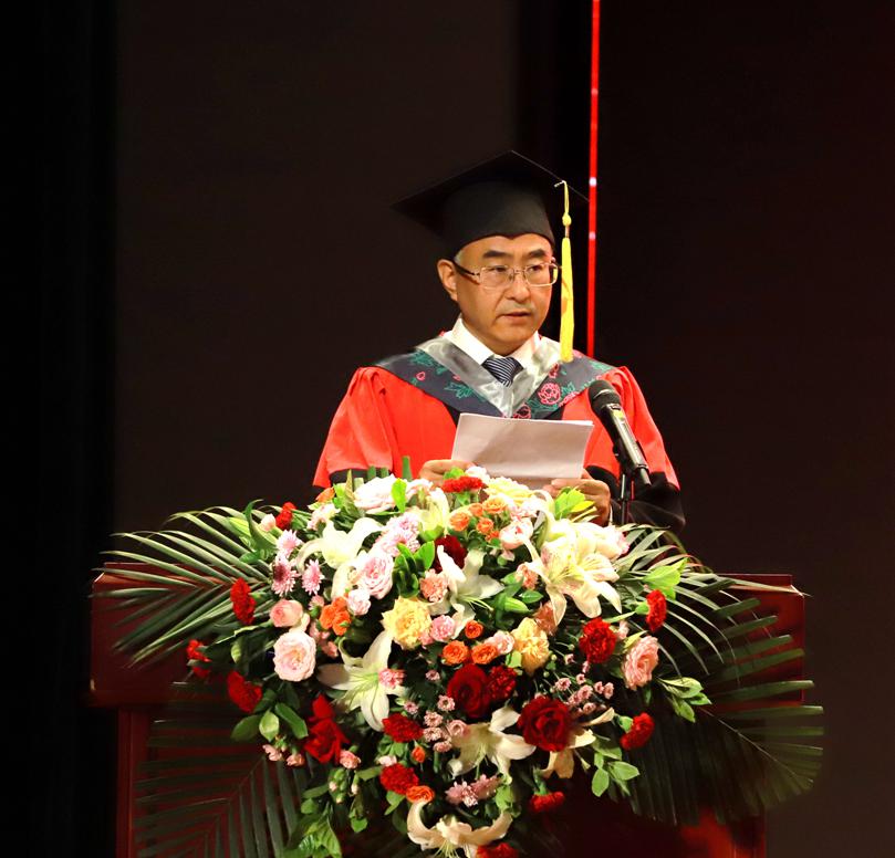 杨敬民代表学校向顺利完成本科学业的同学们表示热烈祝贺,向辛勤培育同学们的父母和老师致以衷心的感谢。四年来,同学们深耕苦读、勇于实践、茁壮成长,培养了北疆人“明德、笃学、励志、求真”的情怀、使命和担当。四年来,同学们见证了中华人民共和国成立70周年、中国共产党成立100周年、党的二十大胜利召开等重要的历史时刻,见证了学校的建设发展。师生齐心协力、共克时艰,用奋斗书写了精彩的青春华章,共同拥有了美好难忘的回忆。