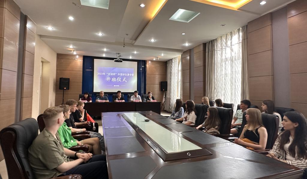 本网讯(特约记者 姜皓)7月1日,我校2023年“汉语桥”外国学生夏令营开班仪式在友谊楼会议室举行。校党委委员、副院长谢慧,国际交流合作处、国际教育学院负责人及项目管理人员参加活动。