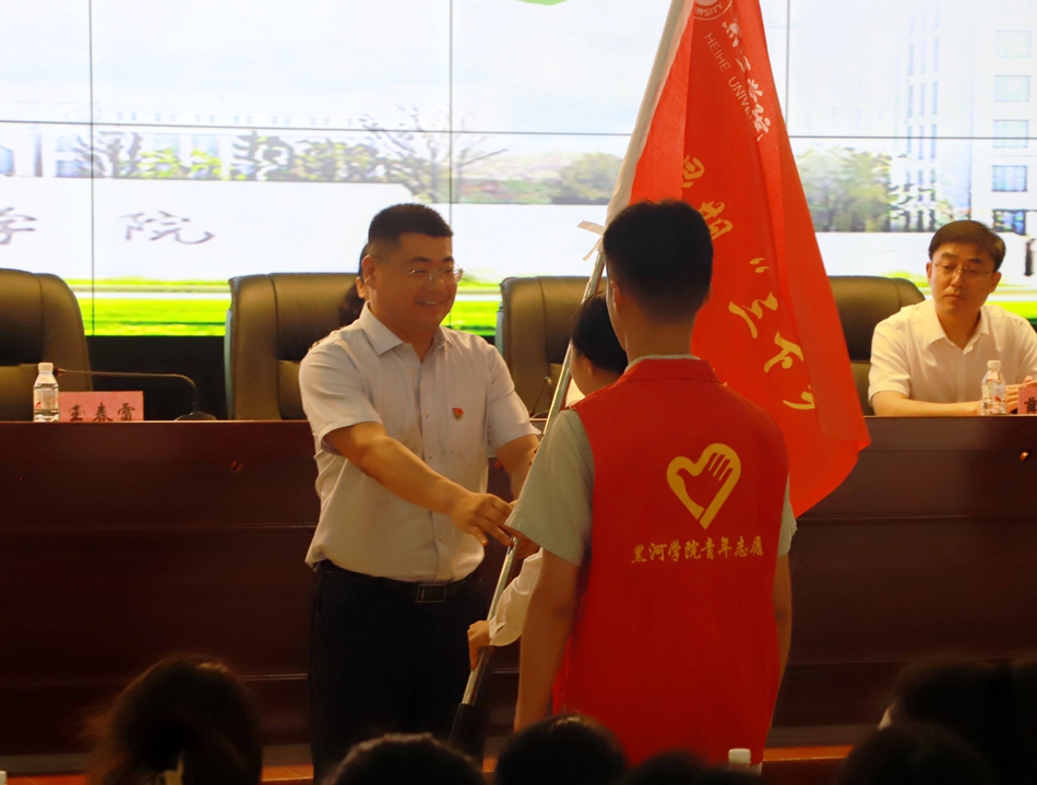 出征仪式在嘹亮的国歌声中拉开序幕。与会领导分别宣读了入选2023年国家级社会实践示范团队、志愿宣讲团名单;黑河学院2023年暑期“三下乡”社会实践校级重点团队的名单;关于2023年黑龙江省“扬帆计划”实习活动岗位对接名单。“返家乡”大学生社区社会实践学生代表胡溪洋与社区代表薛思学签署了实践协议。校团委代表张彦涛与学院团委负责人代表杨茹签订了《黑河学院2023年暑期大学生社会实践安全责任书》。人文传媒学院赵宇作为社会实践团队指导教师代表发言。学生先锋队代表从尚达带领即将出征的实践团队进行了庄严宣誓。