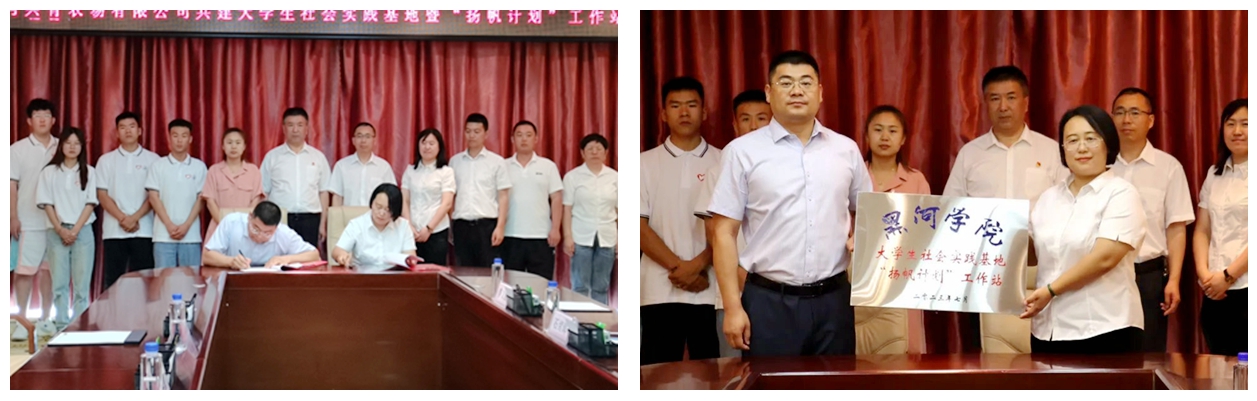 近日,我校与共青农场有限公司共建大学生社会实践基地、“扬帆计划”工作站签约授牌仪式顺利举行。校党委副书记王春雷,共青农场有限公司党委委员、纪委书记石绪辉,党委委员、工会副主席曲海龙出席仪式,校团委、我校暑期社会实践团队成员、当地学生代表及共青农场相关负责人参加活动。