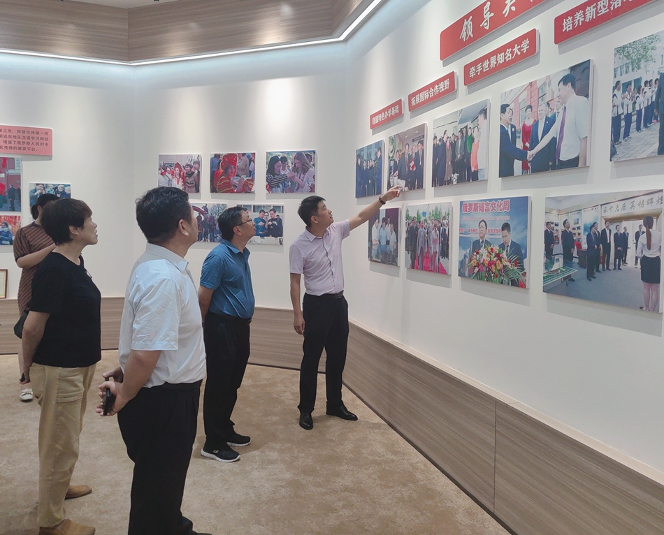 本网讯(特约记者 谢晓宇)8月1日,中华同心温暖工程基金会副理事长兼秘书长方乃纯一行6人,在市政协副主席、市职教社主任王成武等人的陪同下,来访我校调研对外交流合作情况,实地察看校史馆、冰球馆、综合体育馆,国际交流合作处、场馆中心负责人陪同调研。