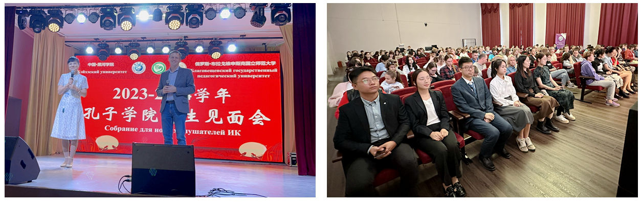 9月8日,我校与布拉戈维申斯克国立师范大学共建的孔子学院在布拉戈维申斯克国立师范大学礼堂举行了新生入学见面会,孔子学院俄方院长兼布师大外事与公共关系处处长库哈连科·尼古拉·弗拉基米罗维奇、中方院长王晓梅分别为全体新生介绍了孔子学院的创办历史、办学理念、汉语学习前景及社会影响;孔子学院的办学宗旨、师资配备、教学水平、课程设置,并详细解读了孔子学院奖学金推荐政策、就业前景等事宜。据悉,今年孔子学院新生入学数量再创历史新高。