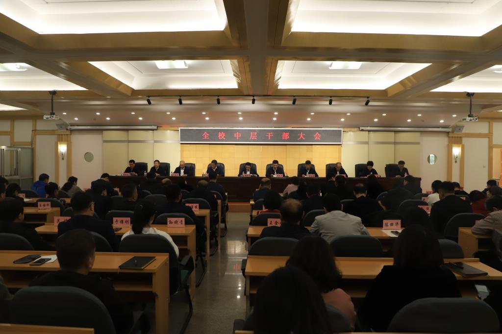 本网讯(记者 关月 摄影 陈虹旭)9月13日,学校在明德楼5楼多功能厅召开2023年下半年中层干部大会,传达学习贯彻习近平总书记在我省视察和主持召开新时代推动东北全面振兴座谈会时的重要讲话重要指示精神,部署2023年下半年重点工作。校领导班子成员,副科级以上干部、各民主党派负责人、骨干教师代表参加会议。会议由党委副书记、工会主席张焕强主持。