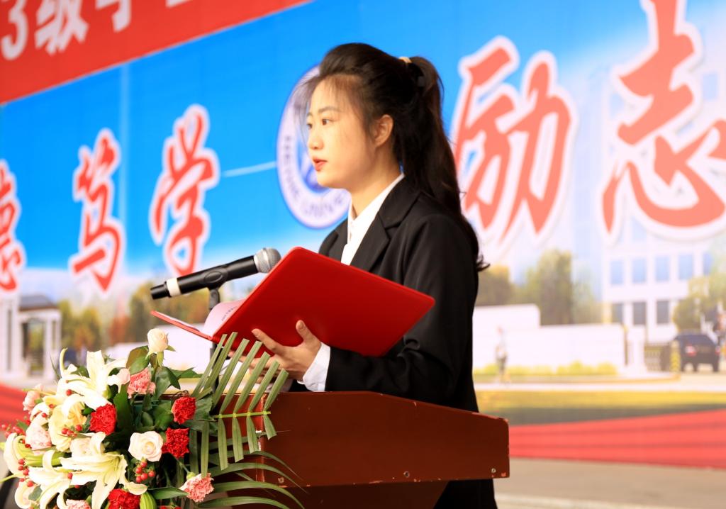 新生代表音乐学院2023级航艺1班吴万福在发言中承诺将时刻牢记“明德、笃学、励志、求真”的校训,成就最美人生,勇担时代重任,谱写砥砺奋进、绚丽多彩的青春华章。