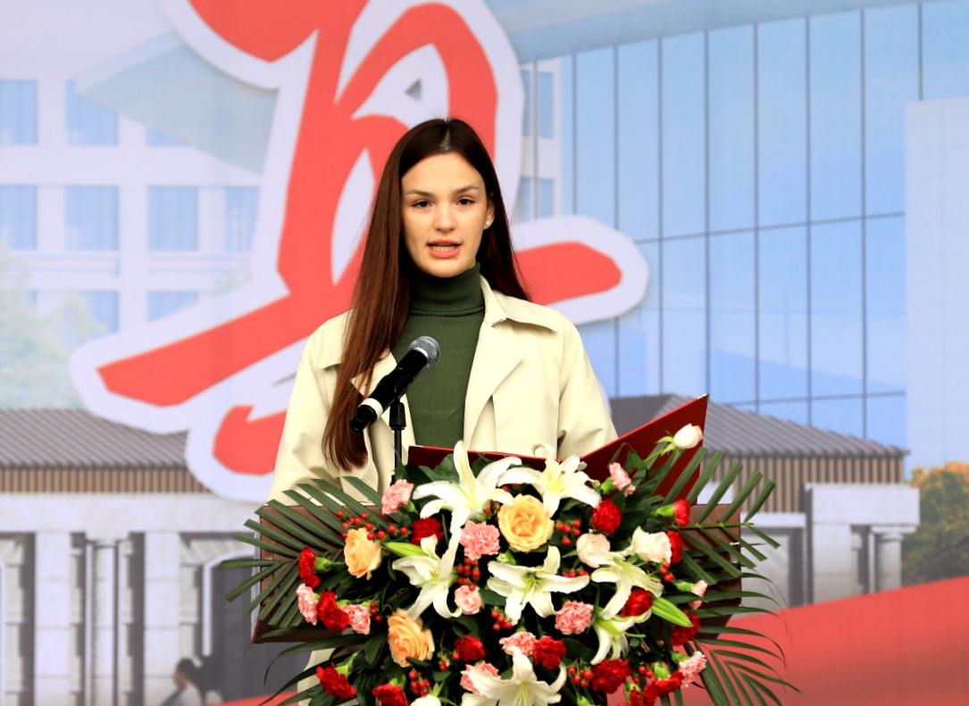 国际留学生代表2021级苏紫在发言中讲述与学校、汉语的相遇,字句之间无不表达出对学校的自豪,希望同学们不负韶华,用青春铺路,让理想延伸,讲述更加精彩的黑河学院故事。