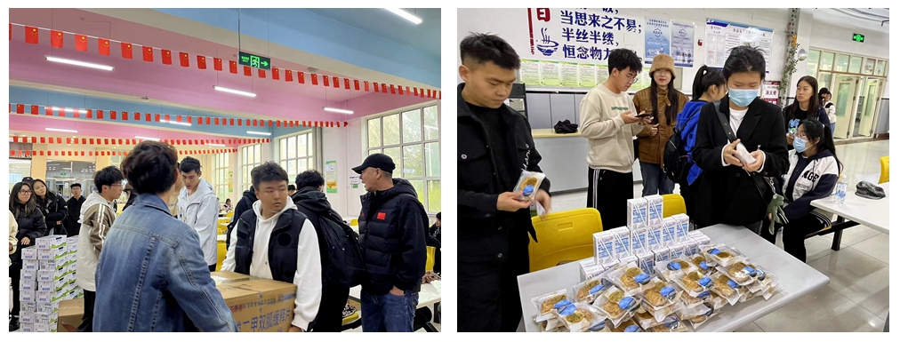 据悉,每逢中秋学校都会拨付专项资金,为广大学生发放月饼等节日礼品。本次活动共计发送月饼约23000个、牛奶约23000盒。中午12点,随着派送月饼的时间将至,稻香园里,一个个包装精致的月饼排列整齐,正迎接着从各个方向赶来的同学们。领取月饼后,同学们都为学校的用心而感到欣喜,有的三五伙伴打卡留念,定格在校团圆这一刻;有的立刻拆开品尝月饼的滋味,感受盈绕齿尖的豆沙香......