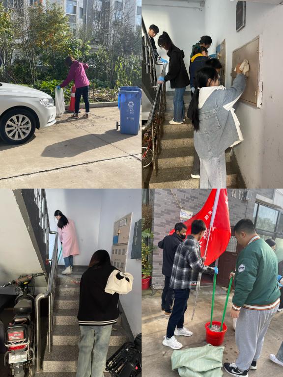 活动期间,全校18个党总支、百余名志愿者和社区新时代文明实践站服务队来到学府佳苑,拿好扫帚、拖布、铲子等清扫工具,分工明确地展开清洁楼道、清除小广告、消除卫生死角、小区内的废弃物清除以及公共设施清洁等服务。