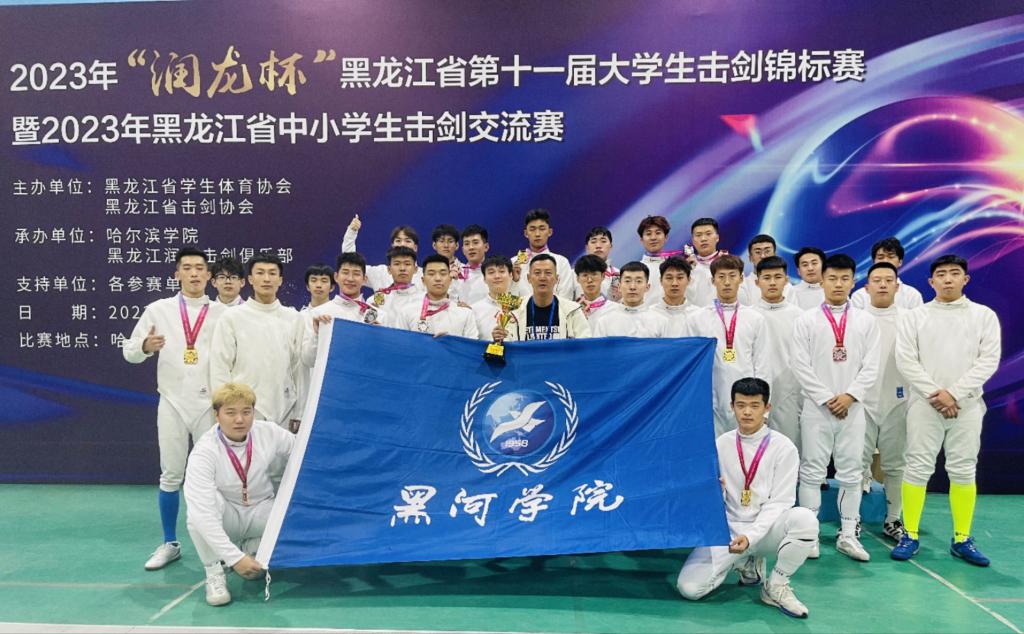 9月29日由黑龙江省学生体育协会、黑龙江省击剑协会主办,哈尔滨学院承办的 2023年“润龙杯”黑龙江省第十一届大学生击剑锦标赛在哈尔滨学院体育馆闭幕。我校击剑队参加男子佩剑、重剑、花剑个人和团体六个项目的角逐,最终获得男子佩剑团体个人冠亚季军,团体冠军,男子花剑团体亚军,男子重剑团体季军,共计5金5银5铜!