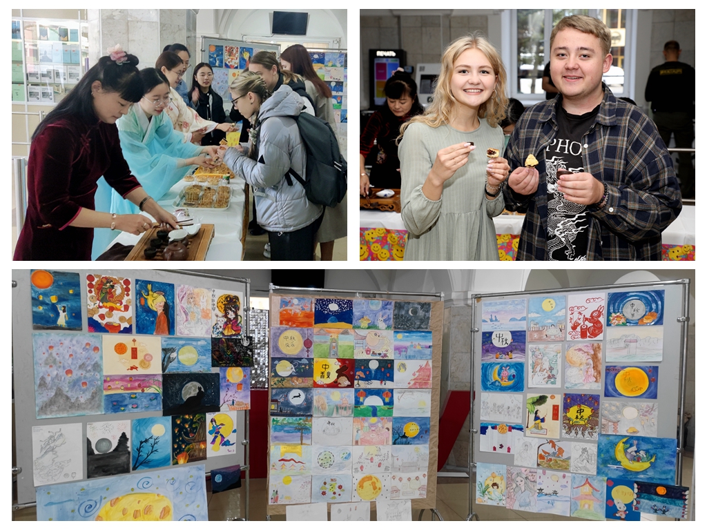 本网讯(特约记者 王晓梅)近日,我校与俄罗斯布拉戈维申斯克国立师范大学共建的孔子学院在布师大一楼大厅举行孔子学院日“庆中秋、迎国庆”系列活动,形式多样、内容丰富的中华传统文化活动,受到了广泛好评。