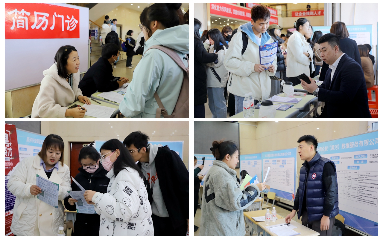 此次招聘会由黑河市人力资源和社会保障局及我校共同主办,现场采取线上线下同步进行。招聘企业涵盖来自北京、深圳、苏州、沈阳等多地区的52家单位,提供电子商务、金融、教育、新媒体等多个领域的3710余个职位,行业跨度大,岗位类型涵盖面广,满足毕业生多元化求职需求。共有3640余名学生参会,投递简历1500余份,意向签约600余人。