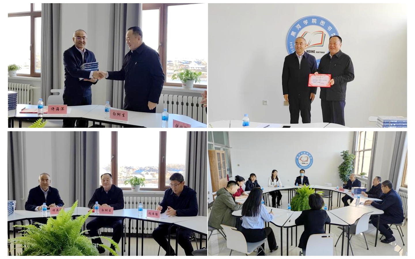 会上,许海深代表学校接受捐赠方赠书,向作家滕贞甫先生颁发了捐赠证书,对校友滕贞甫先生心系母校教育事业发展表示感谢,并详细介绍了近年来学校在教育教学、人才培养、基础建设等方面的发展情况。白树生代表滕贞甫先生感谢黑河学院的培养,转达了滕贞甫先生对母校各项事业发展蒸蒸日上的祝愿及作为黑河学院学子为母校的快速发展贡献绵薄之力的心愿。