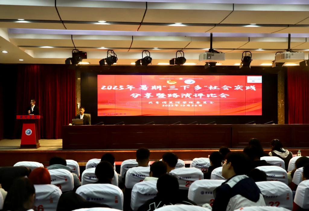 本网讯(特约记者 常昱 摄影 陈福建)为进一步深化育人实效,强化经验总结、典型激励,选树典型、表彰先进、发挥榜样模范的带头示范作用,近日,我校2023年暑期“三下乡”社会实践分享暨路演评比会在求知楼报告厅举行。宣传统战部、学生工作部、教务处、人事处、保卫处、校团委相关老师担任此次评比会的评委,各实践团队及300余学生代表观摩了本次活动。