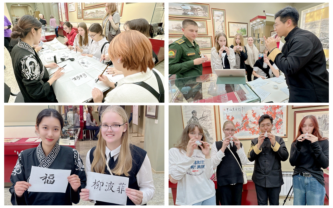 11月3日,由阿穆尔州地质博物馆举办的全俄“艺术之夜”传统文化展示活动如期举行,我校与俄罗斯布拉戈维申斯克国立师范大学共建的孔子学院教师与当地近千名市民和中国文化爱好者走进阿穆尔州地质博物馆亲身感受中俄传统文化魅力,教师们现场展示书法及中国民族乐器陶笛的演奏,让更多当地民众进一步了解了孔子学院,了解了汉语和中国传统文化魅力。