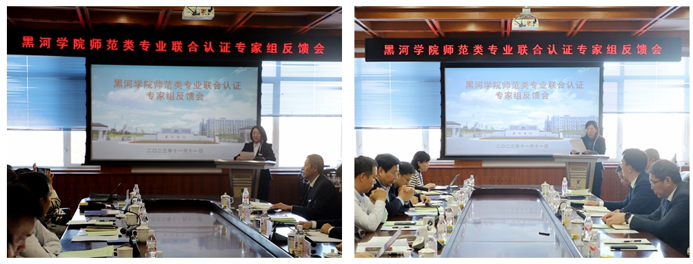 考查期间,专家组通过深度访谈、听课看课、实地考查、文卷审阅等方式对我校英语专业、数学与应用数学专业的建设情况进行了全面考察与指导。陈广文代表联合认证专家组充分肯定了我校师范类专业内涵建设成效。他指出,黑河学院始终坚持社会主义办学方向,全面落实立德树人根本任务,主动融入、对接国家以及黑龙江省和黑河市基础教育改革发展与教师队伍建设重大战略需求,持续深化教师教育改革,探索创新教师教育发展思路和师范专业人才培养模式,积极推进教师教育工作创新发展;65年来,学校以振兴中国教育事业为己任,以质量建设为根本,以内涵建设为核心,坚持发展是第一要务,人才是第一资源,创新是第一动力,扎根边疆,办中国特色社会主义大学,积极探索新形势下边疆高校特色发展之路,学校各项事业实现跨越式发展;学校坚守教师教育特色,构建三位一体教育联盟,主动为地方基础教育事业发展和社会主义新农村建设服务,体现了学校扎根黑河,立足龙江,服务新一轮东北振兴战略,努力为区域经济社会发展提供人才与智力支撑的服务定位。
