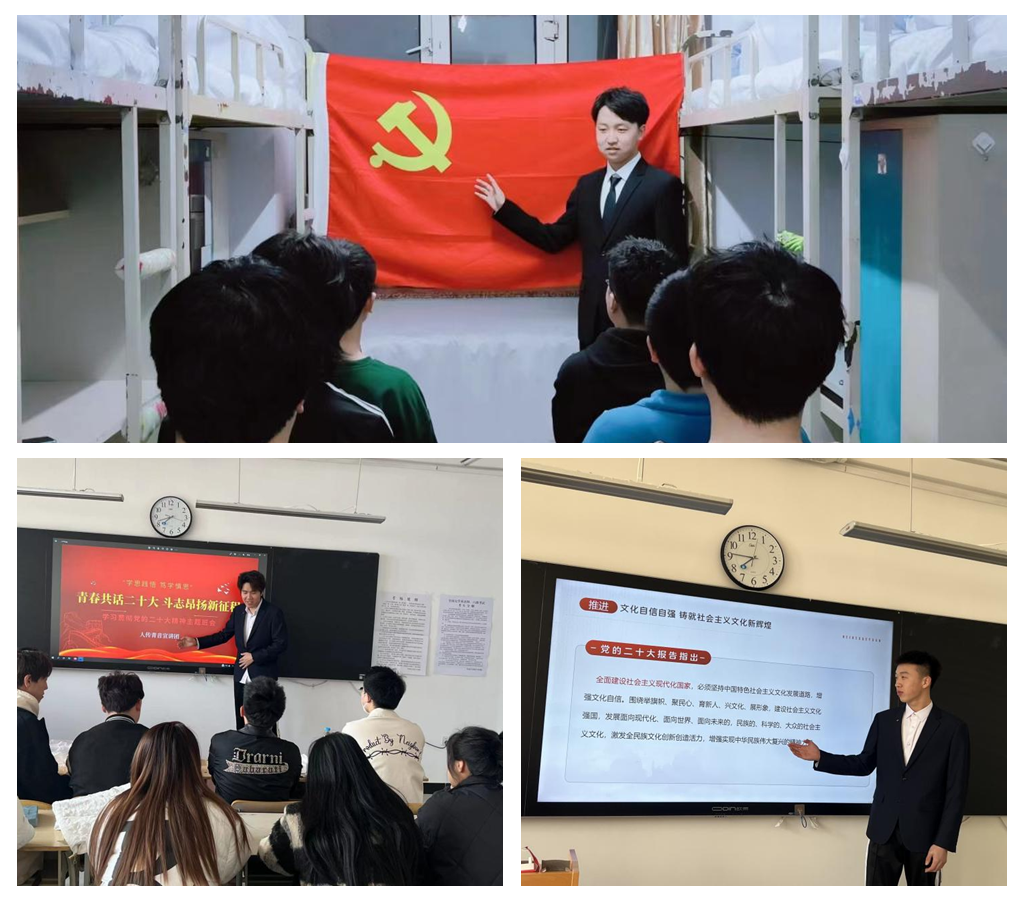 党的二十大精神飞入千家万户,需要不断地创新方式方法。为更好地发挥“青音”宣讲团作用,提升宣讲活动的覆盖面和实效性,宣讲团成员通过召开主题党日、主题团日、主题班会等方式,走进教室、班级、寝室,深入开展了一场场接地气、有朝气的青年理论微党课,实现“我把二十大精神讲给年轻人听”。