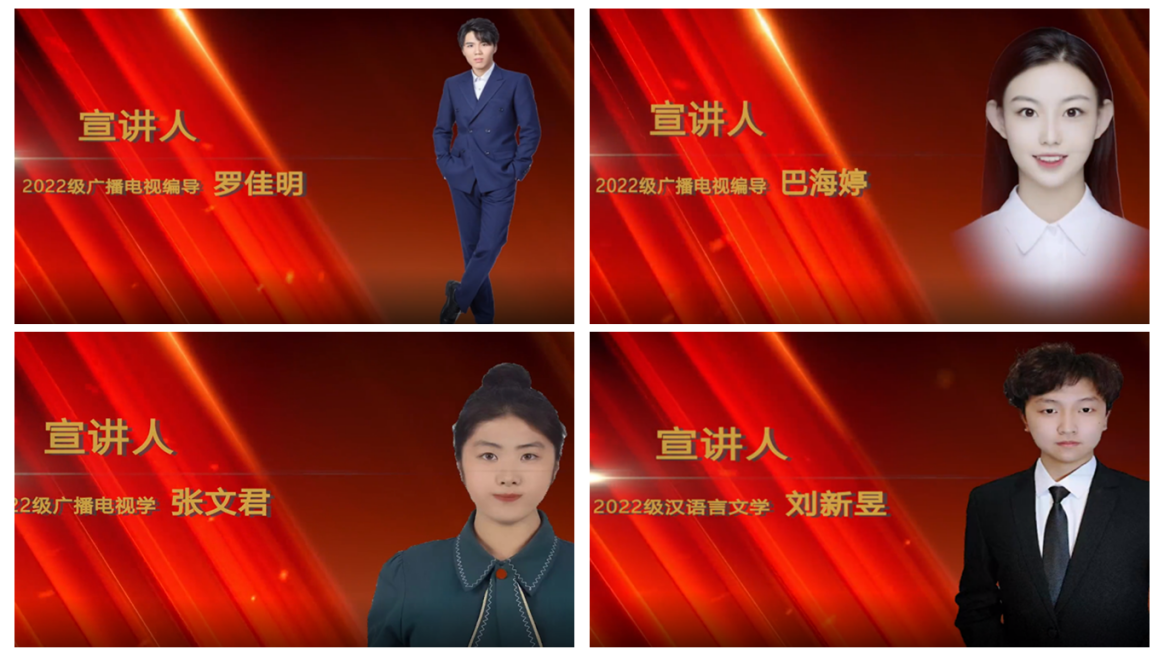 目前“青音”宣讲团拥有固定团员20人,指导教师2人,外聘指导专家3人,另有宣讲学生骨干15人。主要利用新生入学教育、党团支部学习、积极分子培训等时机,围绕“中国共产党的百年光辉历程”“推进文化自信自强,铸就社会主义文化新辉煌”“二十大关键词解读”“习近平和大学生朋友们”等内容展开专题宣讲,真正发挥人文传媒学院学生专业特点和自身优势,让青“音”青“语”的理论宣讲成为校园“主旋律”,促进党的创新理论融入立德树人全过程。2023年5月,宣讲团申报的《“00后”思政宣讲团的“移动课堂”》荣获“全省高校学习宣传贯彻党的二十大精神优秀创新案例”。