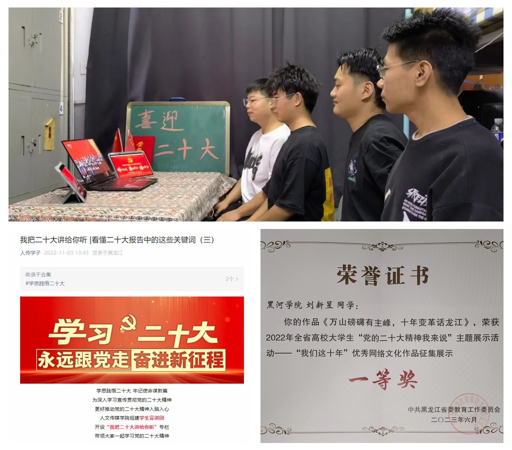 “未来属于青年,希望寄予青年。”作为我省北疆规模最大、学科门类齐全的应用型人才培养基地,黑河学院根植边疆,立足地方,紧扣立德树人根本任务,着力培养青年大学生的责任担当,利用对大一新生开展入学教育为契机,组建了一支由人文传媒学院2022级学生为主力的“青音”宣讲团。这支由“00”后组成的宣讲团队伍,结合自身专业背景与青年实际,灵活运用青年视角、青年方式、青年话语,通过线上线下立体联动,打造沉浸式、互动式的“移动课堂”,力求把党的二十大精神讲清楚、讲明白、讲生动,真正让党的二十大精神与青年学生的理想信念、专业学习、成长成才结合起来,进一步推动实现“用党的科学理论武装青年,用党的初心使命感召青年”。