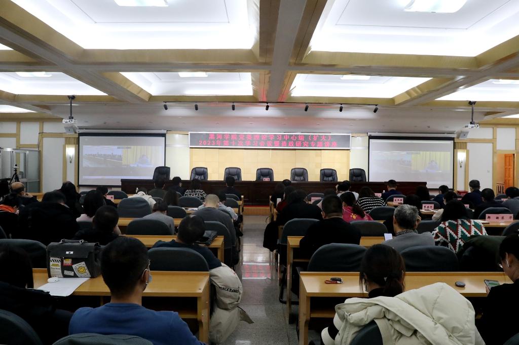 本网讯(特约记者 彭传怀 摄影 陈福建)为进一步提升我校教师的资政研究水平,持续发挥高校作为党委政府决策咨询思想库和智囊团的重要作用,11月29日,我校在明德楼五楼多功能厅党委理论学习中心组(扩大)2023年第十次学习会议暨资政研究专题讲座。学校党委理论学习中心组成员,各党总支书记、学院(中心、部、所)、各处室负责人及相关学科专业教师近百人参加会议。会议由党委委员、副院长谢慧主持。