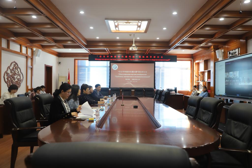 本网讯(特约记者 姜丹 摄影 李成)11月30日,由我校和俄罗斯阿穆尔国立大学联合举办的“语言学和媒体传播问题”国际学术研讨会在黑河学院及俄罗斯阿穆尔国立大学召开,学校党委委员、副院长谢慧,国际交流合作处、科研处相关负责人和外国语学院教师在明德楼三楼会议室参加线上会议。此次会议共有来自中国、俄罗斯、日本、越南等地的102位专家、学者参会。
