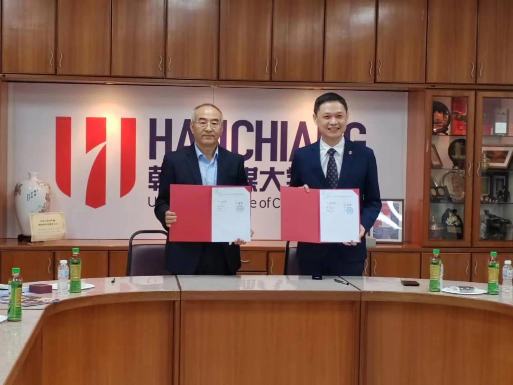 在韩江传媒大学学院,许海深与韩江传媒大学学院校长及相关负责人进行深入交流,双方就教学活动、联合办学、互派教师、人文交流合作进行洽谈,并签署了《中国黑河学院——韩江传媒大学学院合作意向书》。代表团一行深入韩江传媒大学学院电视中心、韩江华人文化馆进行调研。