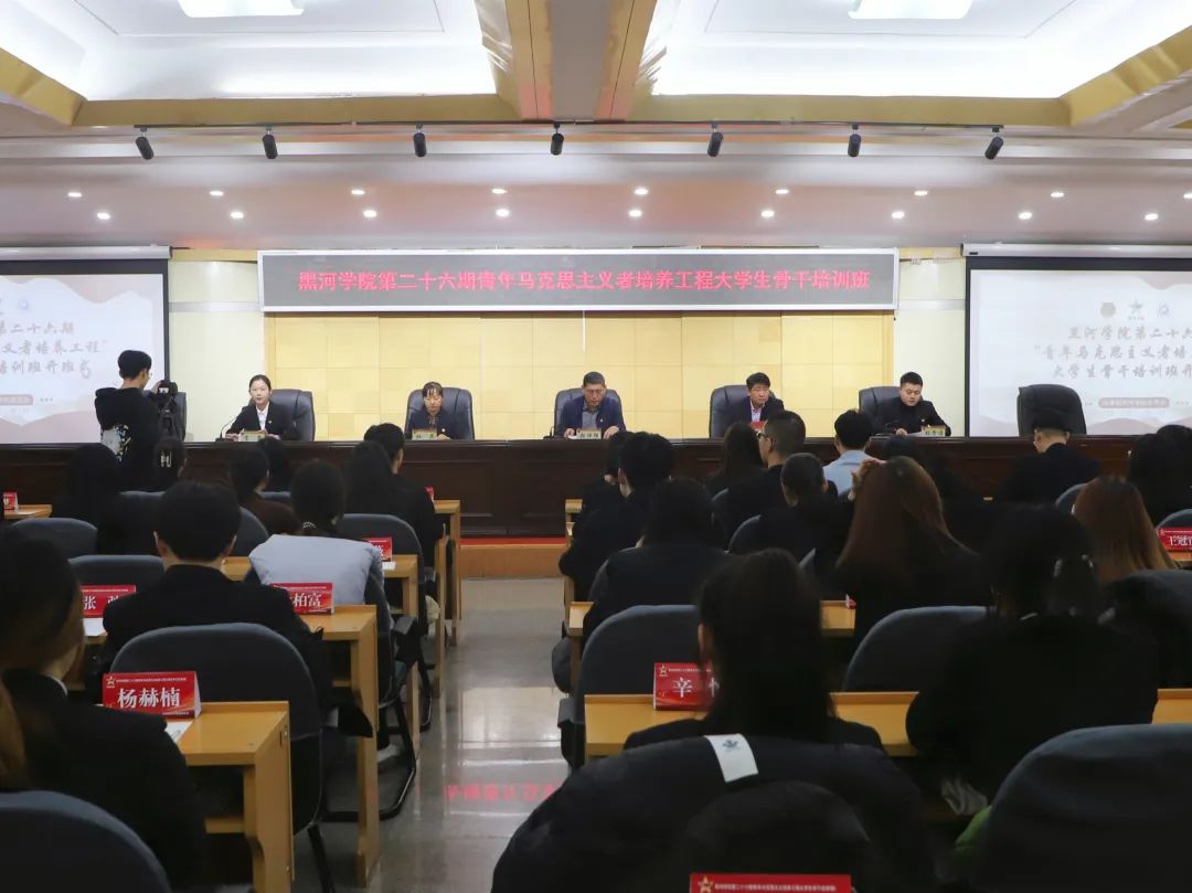 仪式在庄严的国歌中拉开帷幕,开班式上宣读了《黑河学院青年马克思主义者培养工程实施方案》,并为黑河学院第二十六期青年马克思主义者培养工程大学生骨干培训班指导教师(班主任)颁发聘书。