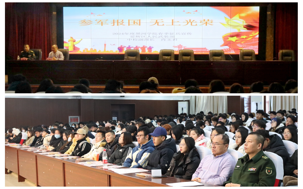 学校还特邀爱辉区武装部中校副部长肖文君在求知楼报告厅作《参军报国无上光荣》主题宣讲,详细说明了报名流程、在部队个人成长发展等相关情况,解答了同学们在退役后的复学、升学、就业、学费减免等方面的疑虑,进一步激发了适龄大学生应征入伍、献身国防的热情。