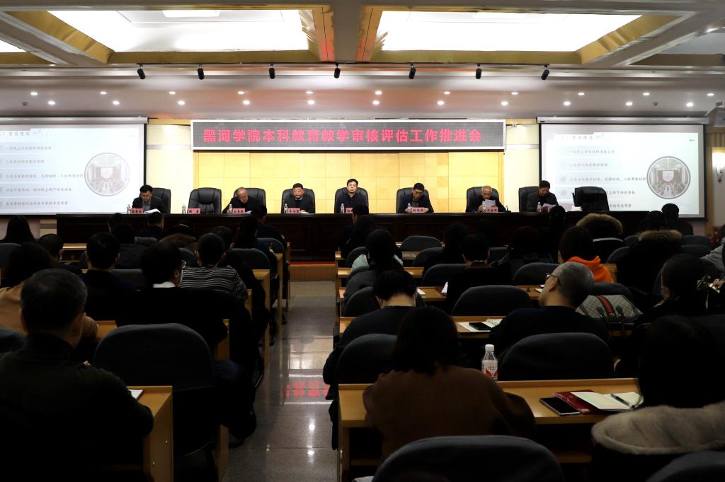 本网讯(记者 关月 摄影 陈虹旭)为全面迎接并做好本科教育教学审核评估工作,12月25日,学校在明德楼五楼多功能厅召开教育教学审核评估工作推进会,校领导班子成员,全体副处级以上干部,各学科、专业带头人,系主任,校级督导,全体评建工作专项组成员参加会议。会议由党委委员、副院长许海深主持。