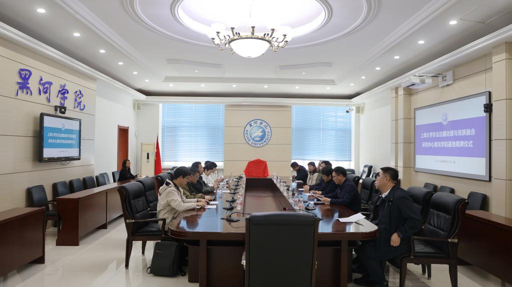 本网讯(特约记者 陈正堂)4月28日,上海大学东北边疆治理与民族融合研究中心黑河学院基地揭牌仪式在我校举行。我校党委副书记、院长杨敬民,校党委委员、副院长谢慧,上海大学伟长学者、二级教授、我校特聘教授张安福及团队、我校王禹浪教授出席会议,校相关部门和学院负责人参加会议。会议由校宣传统战部负责人主持。