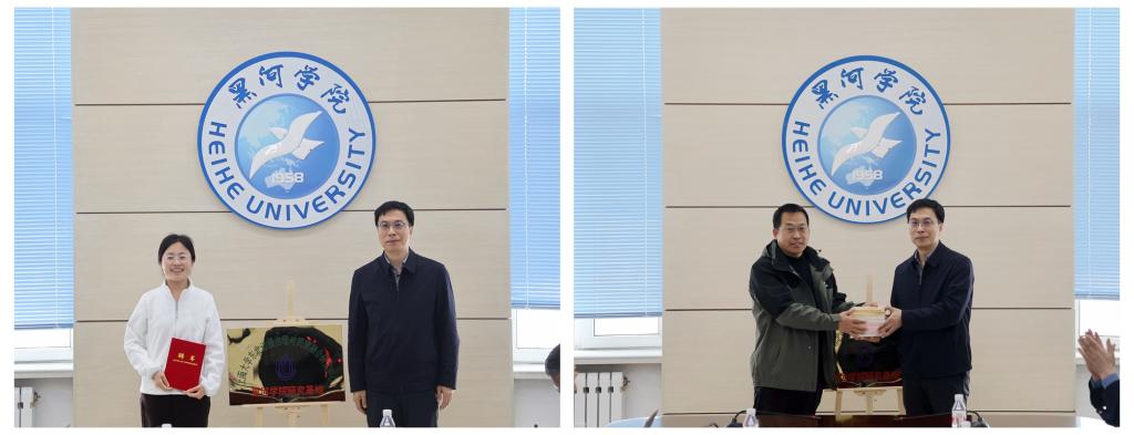 随后,杨敬民为上海大学博士后党琳博士颁发“黑河学院东北亚丝路与流域文明研究中心兼职教授”聘书。张安福代表上海大学向我校赠送书籍。