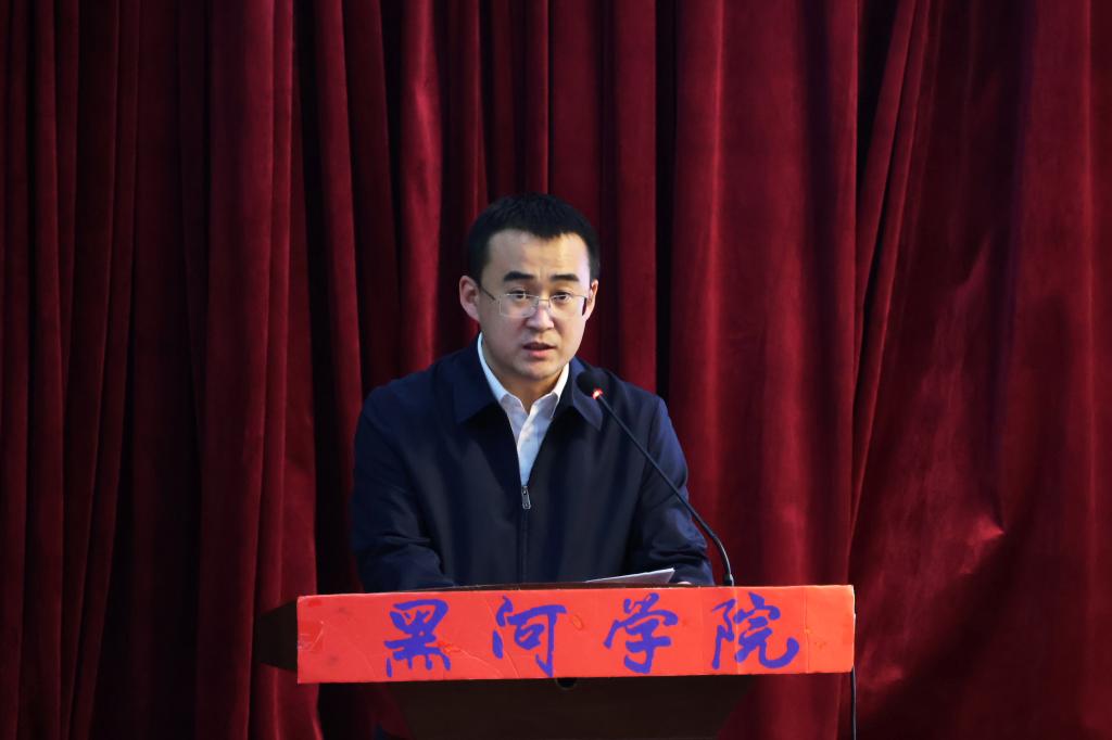 共青团黑河市委书记魏浩亮传达了《习近平给谢依特小学戍边支教西部计划志愿者服务队队员的回信》精神,引领在场的同学们深刻领会习近平总书记对戍边青年的殷切期望,为青年学子们指明了奋斗方向。