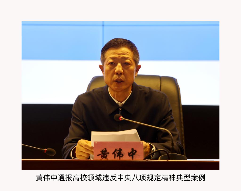 会上,党委副书记、院长杨敬民,纪委书记、党委委员、省监委驻黑河学院监察专员黄伟中通报违反中央八项规定及其实施细则精神典型案例。